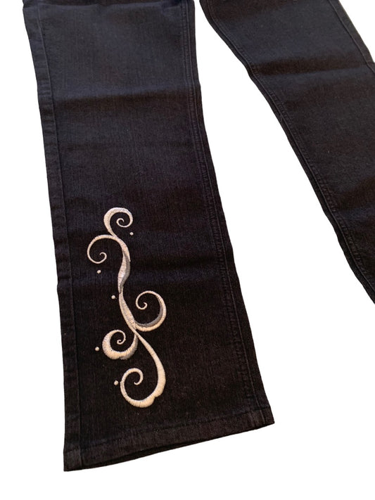 12 Antthony Original New Black Stretch Denim Jeans Embroidered Details