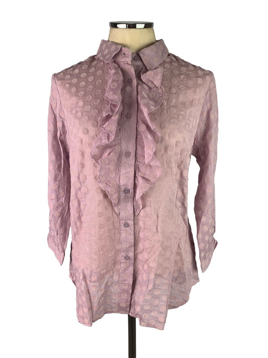 Medium Isaac Mizrahi Live! Sheer Lilac Flock Dot Ruffle Front Button Up
