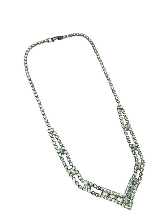 Vintage Rhinestone Silvertone Necklace 16" Formal Weddding Prom
