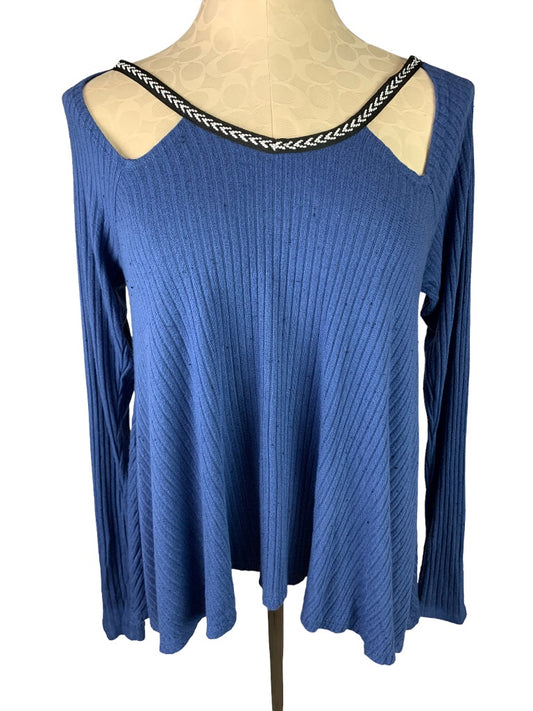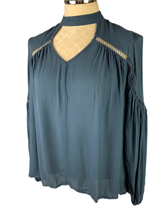 Medium Melrose & Market Blue Pullover Blouse Flowy Keyhole Neckline Boho Style