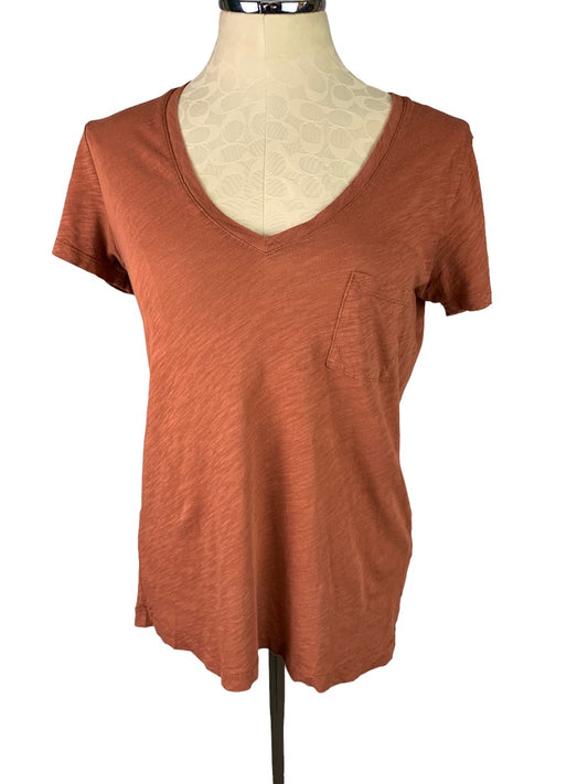 XS Madewell Women's V-Neck Rust Orange Tshirt Short Sleeve Single Pocket