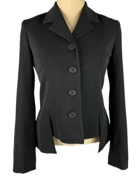 4 Thalian Women's Black Wool Blend 4 Button Blazer Jacket Hi Lo Fitted