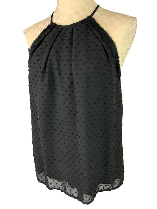 Small Cooper & Ella Black Sleeveless Pullover Lined Blouse Ivory Piping