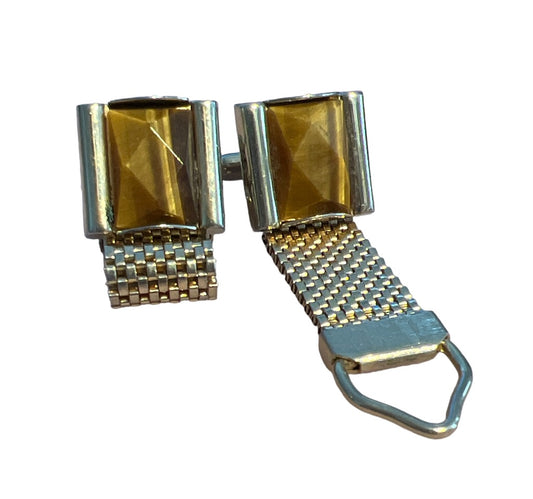 Vintage Tiger’s Eye Wrap Around Mesh Square Goldtone Cufflinks