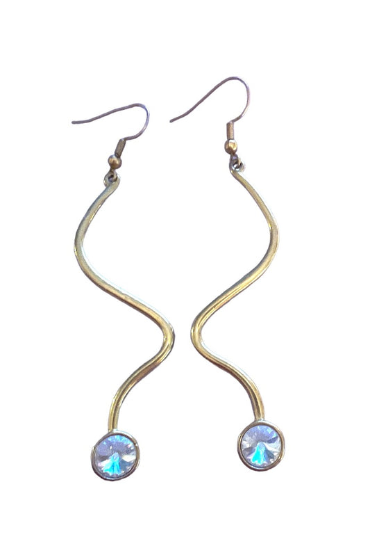 Vintage 80's Goldtone Rhinestone Curvy Dangle Earrings 3 1/4" drop
