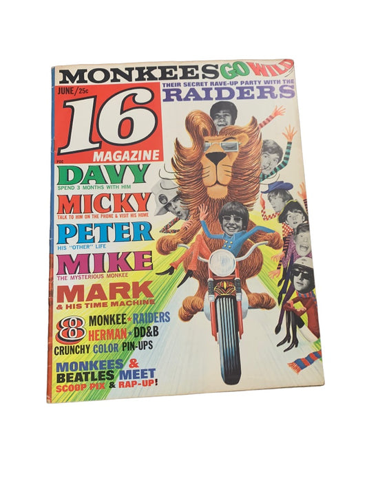 16 6/1967-Monkees-Sonny & Cher-Raiders-Beatles-Davy Jones-teen mag-VG/FN