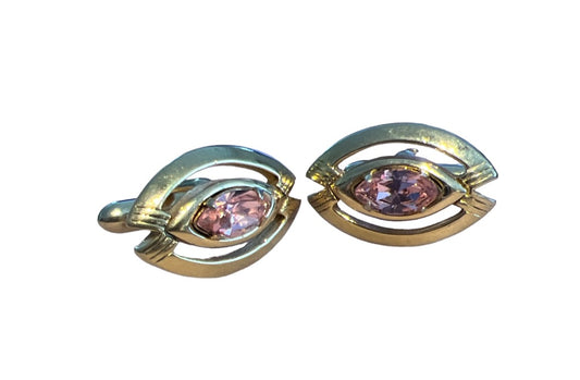 Vintage Swank Goldtone Eye Shape Pink Stone Cufflinks