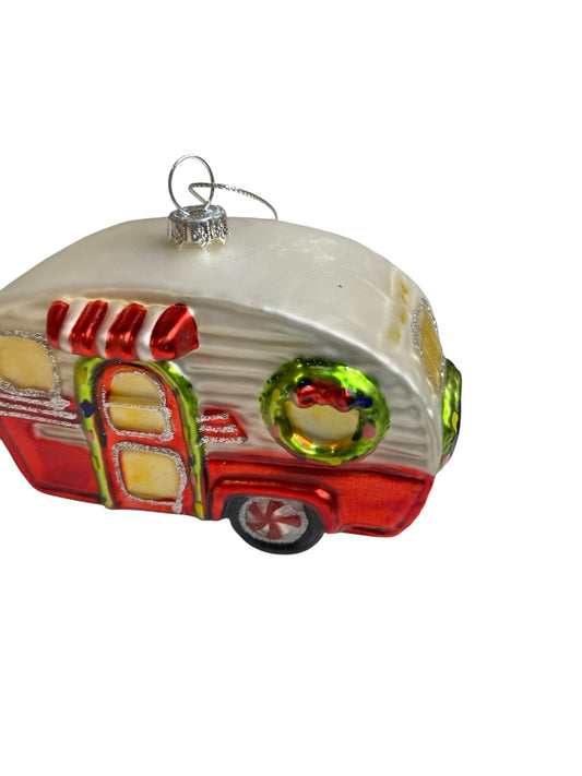 Blown Glass Happy Camper Ornament Holiday Christmas 4.5" Length