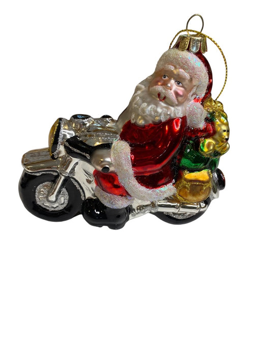 Handblown Glass Biker Santa Ornament Motorcycle Christmas 5" Length