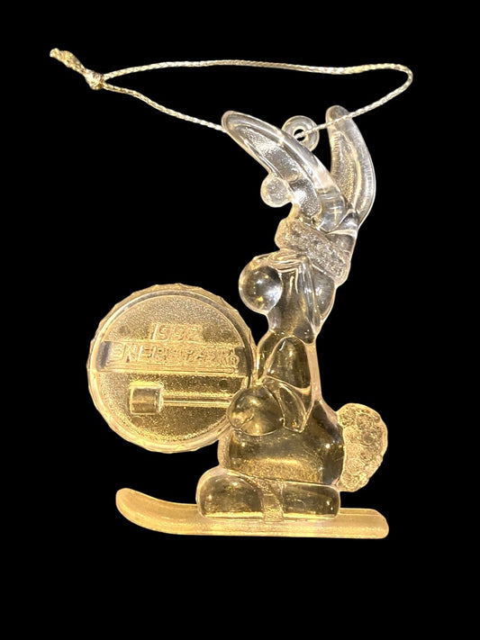 1992 Clear Acrylic Energizer Bunny Ornament 3" Christmas Ski