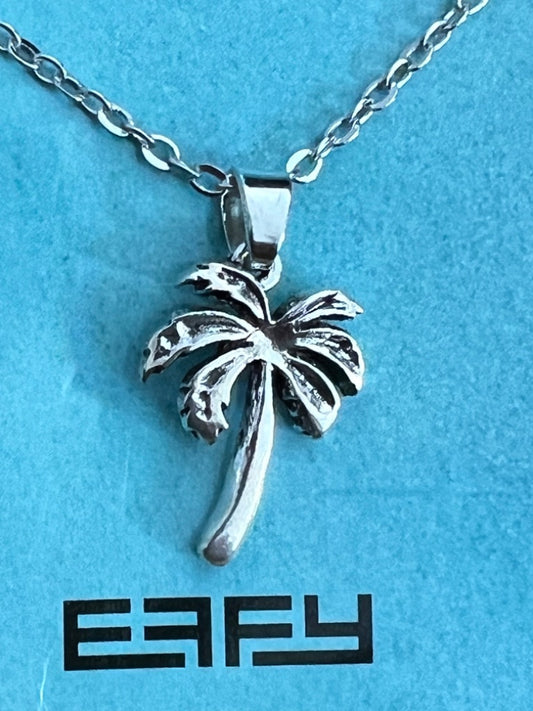 NEW EAFY Silver Palm Palmetto Tree Pendant Necklace 16" + 2" ext