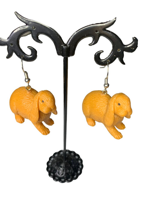Brown Bunny Rabbit Plastic 1 3/4" Drop Dangle Pierced Hook Earrings