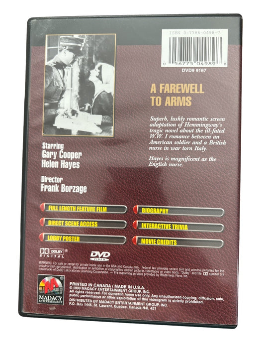 A Farewell to Arms DVD Gary Cooper B&W Full Screen Very Good Condition 1999