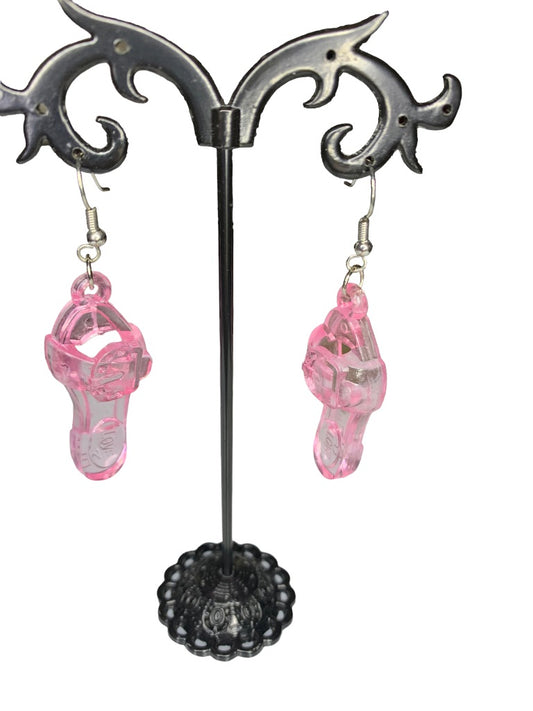 Pink Clear Acrylic Sandal Earrings 2.5" Drop Dangle Hook Pierced