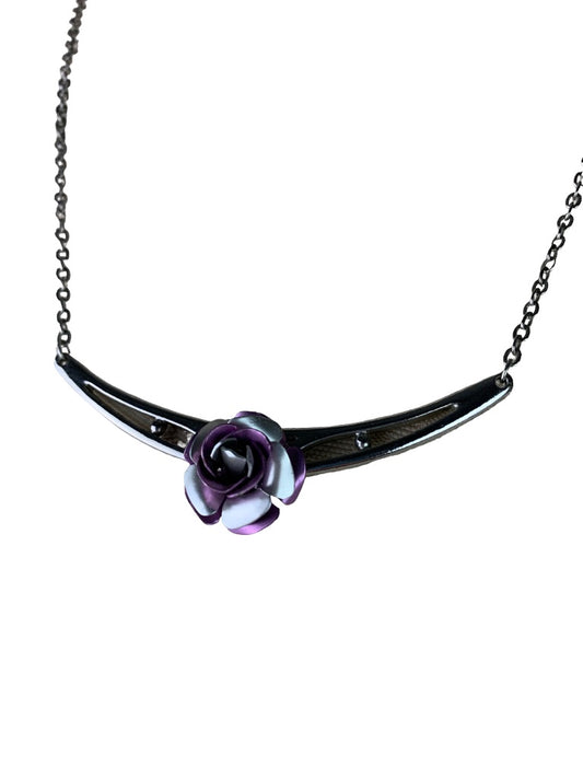 Silvertone 18" Necklace Bar with Purple Rose