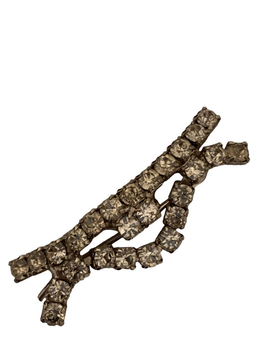 Vintage Rhinestone Barette 2"l Petite Silvertone Setting Scarf Clip