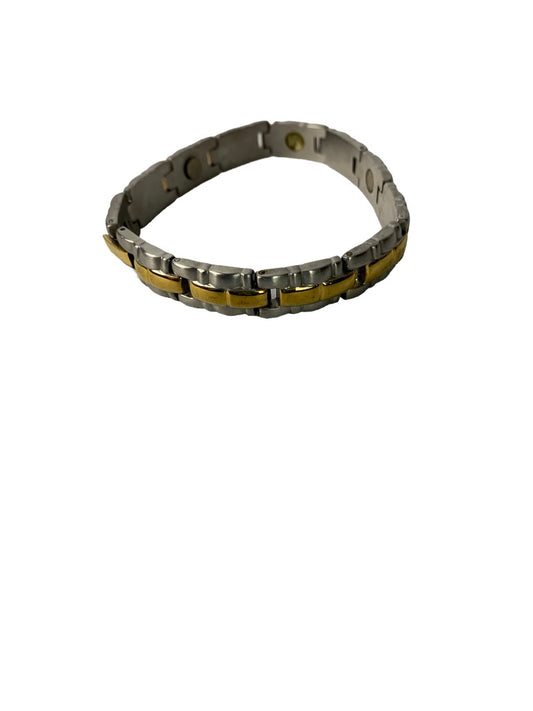 Vintage Link 7.5" Bracelet Stainless Steel Mixed Goldtone and Silvertone