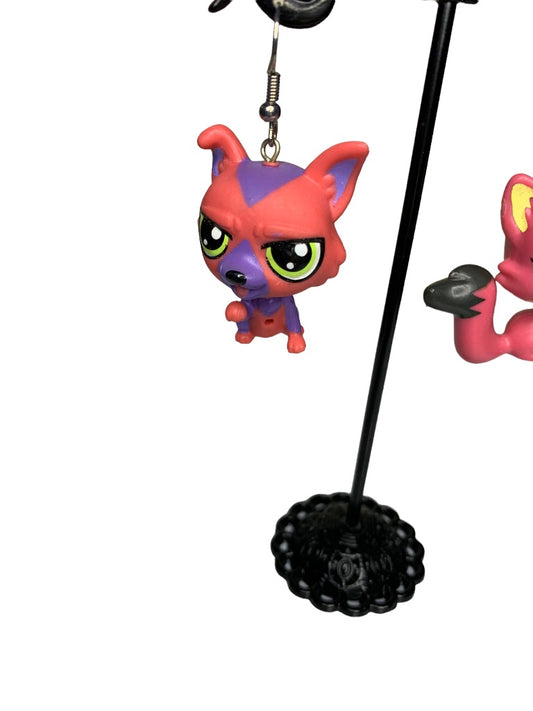 Littlest Pet Shop Earrings Hook Pierced 2" Drop Dangle Pink Fox