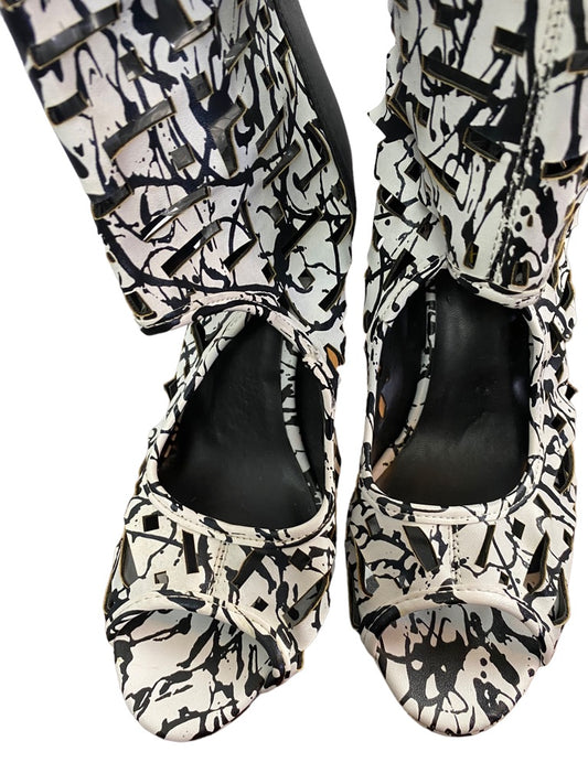 8.5B Athena Brand Women's "Marion" Knee High Peep Toe Lasercut Boots 4.5" Heel