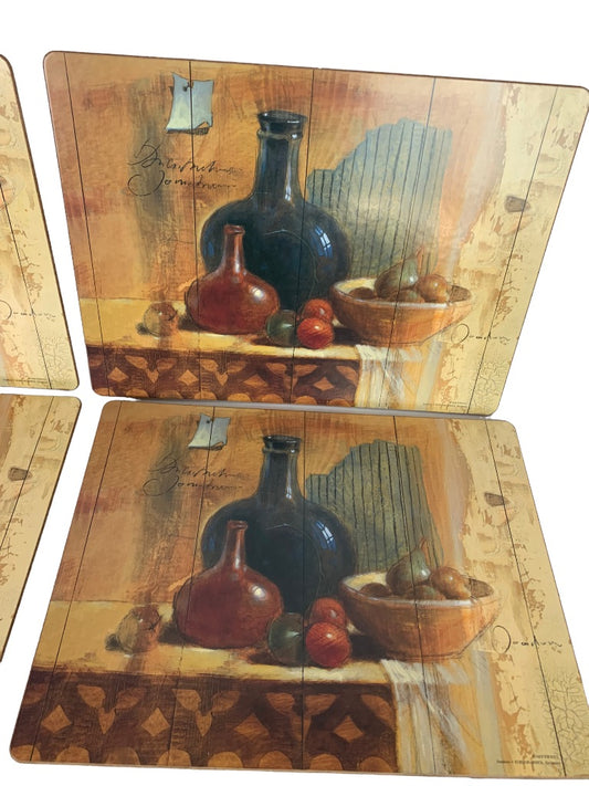 Set of 4 Board Cork Backed Placemats Still Life Tuscan Style 18 1/2" x 11 3/4"