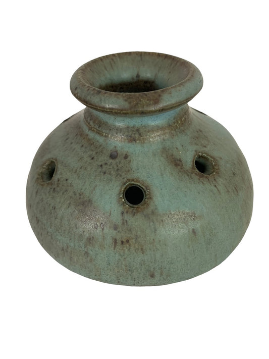 Teal Pottery Oil Lamp Burner with Wick Signed "Debut" 4"h x 5"w