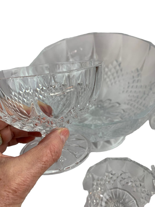 Vintage Crystal Compote Pedestal Serving Bowl and 4 Compote Dishes
