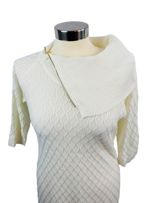 Medium appraisal Women's Ivory Knit Lightweight Sweater Dress Zip Cowl Neck