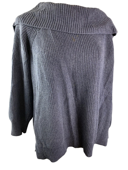 Large 525 America Blue Off the Shoulder Foldover Women's Sweater
