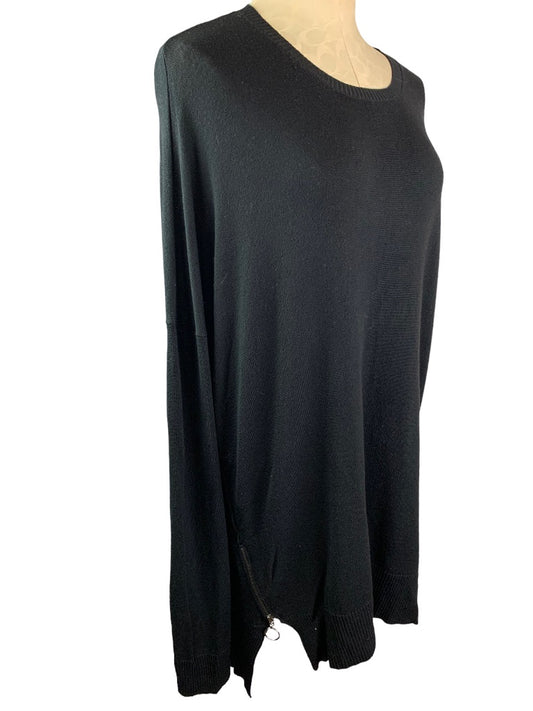 Large Dex Black Tunic Sweater Women's Zipper Embellishment on Side