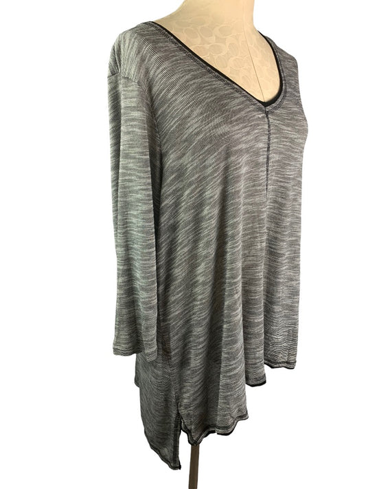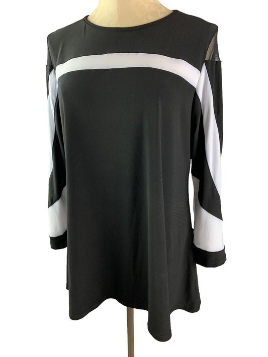 1X Cable & Gauge Women's Black White Sheer 3/4 Sleeve V-Neck Tshirt