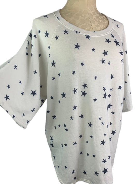 Medium Crepas Women's Oversize Pullover Shirt White Blue Stars Short Sleeve