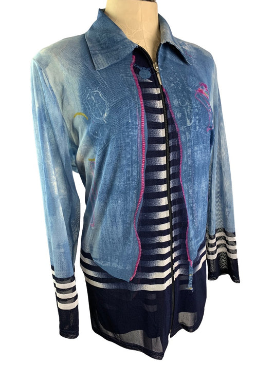 XXL Modelia Women's New Blue Twin Set Mesh Jacket Denim Design