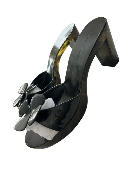 9 Robert Clergerie Cabi Peep Toe Black Patent High Heel Shoes Lucite