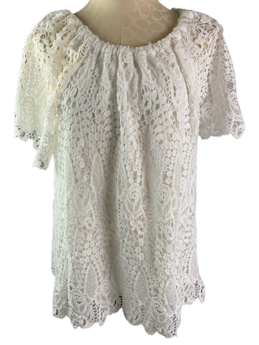1X Adiva Women's White Lace Lined Short Sleeve Off the Shoulder Blouse