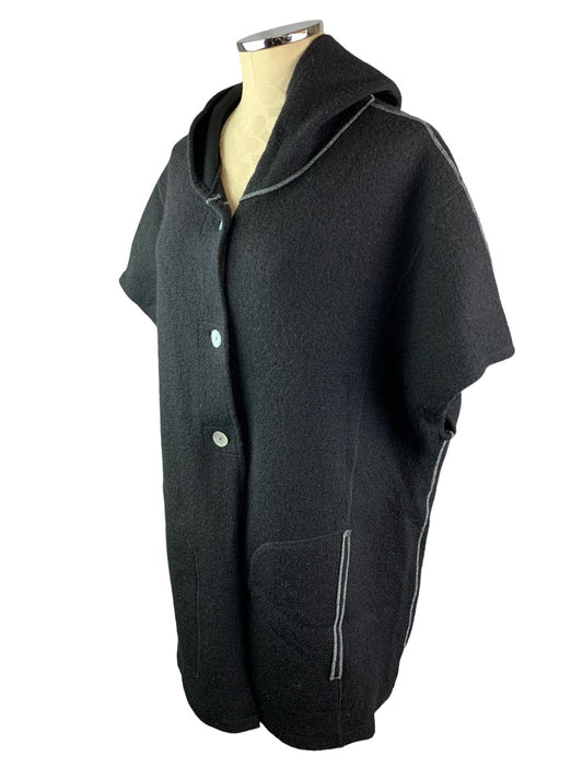1X Katie Todd Women's Black Hooded Wool Blend Short Sleeve Cardigan