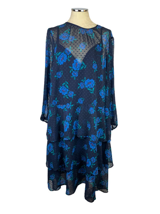 24W Draper James for Eloquii Women's Blue Floral Swiss Dot Dress