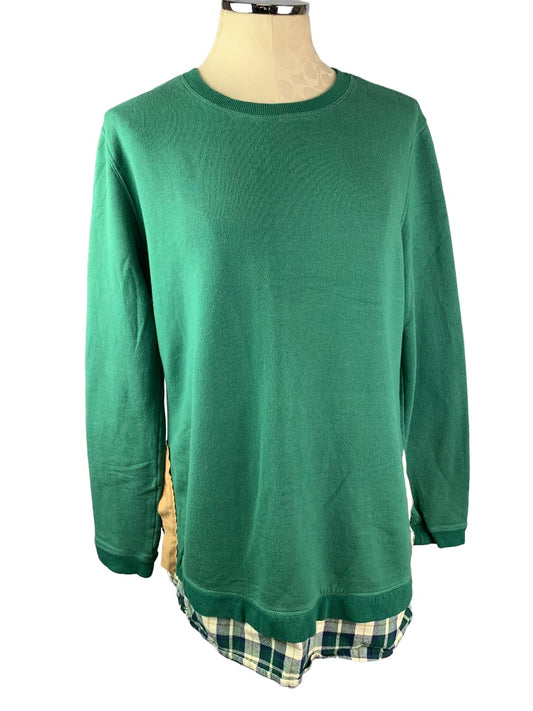 Large evy's tree Women's Green Soft Sweatshirt Flannel Trim "The Charlotte"