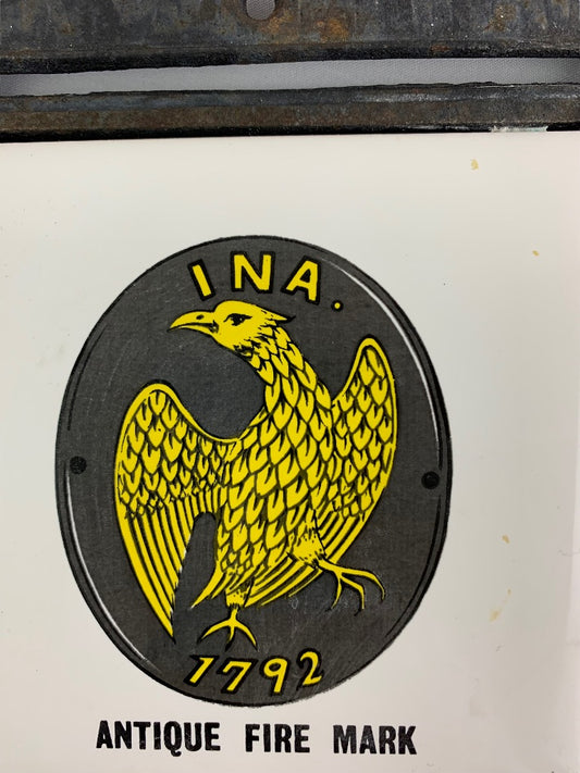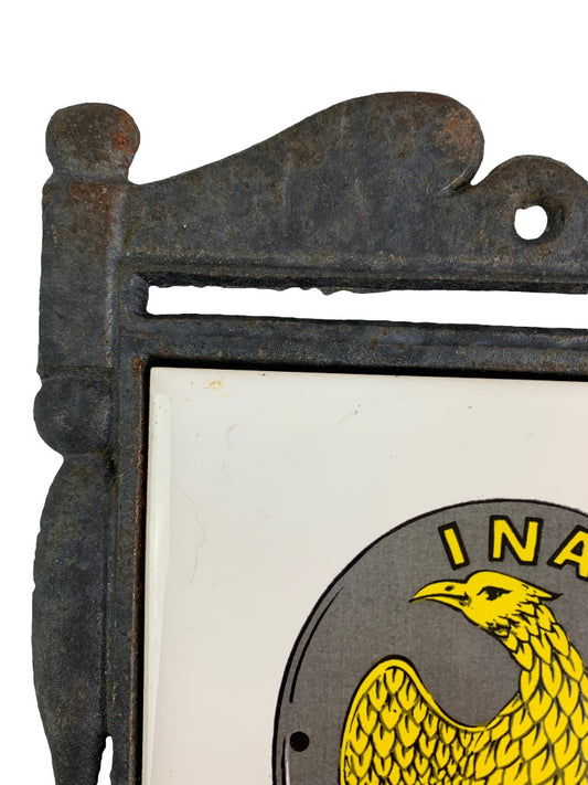 Vintage Tile Trivet "INA 1792" Antique Fire Mark in Cast Iron Made in Japan PWF
