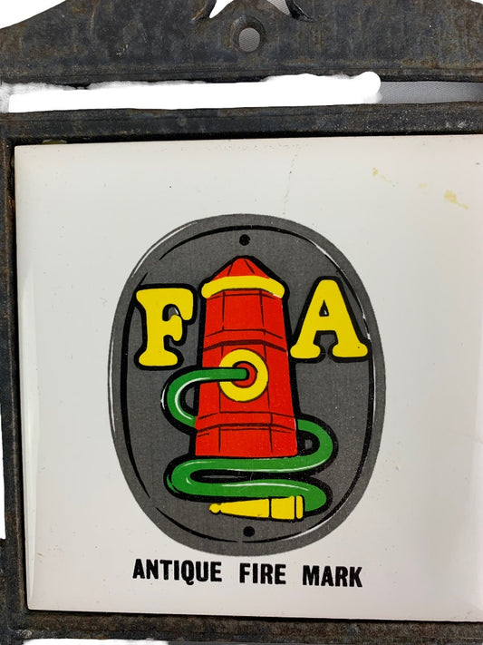 Vintage Tile Trivet "FA" Antique Fire Mark in Cast Iron Made in Japan Ceramic