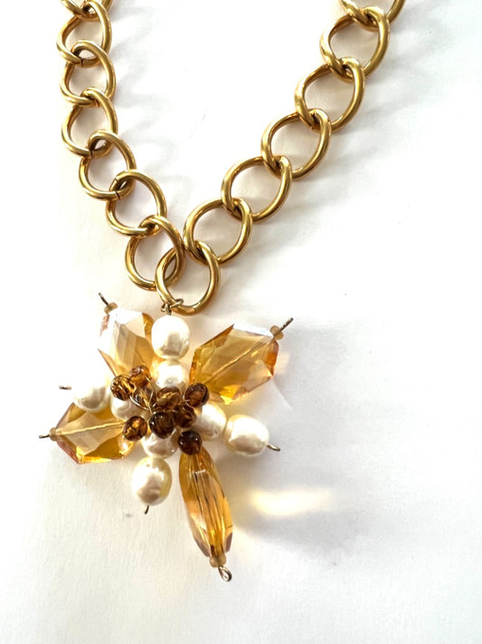Kenneth Jay Lane Chunky Chain Necklace Flower Star Pendant Goldtone Toggle Clasp 16"