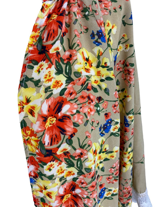 Large Relipop Women's Brown Open Floral Lace Trim Top Sheer Lightweight