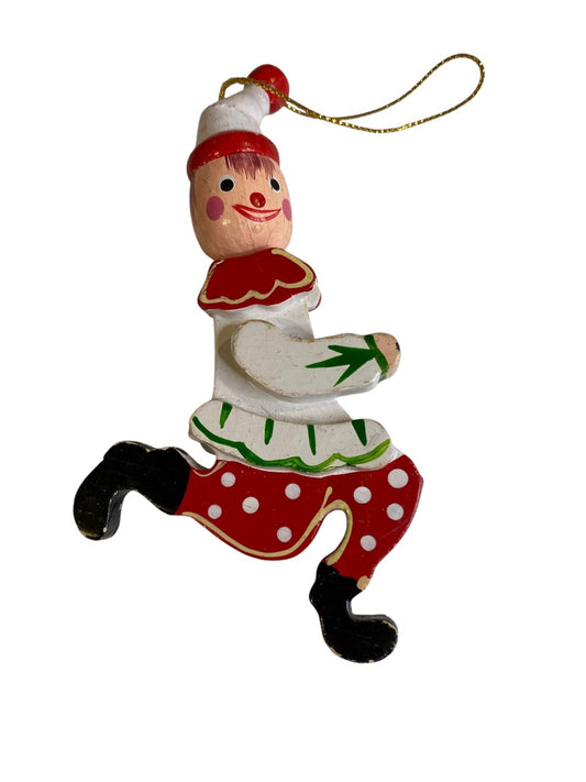 Vintage Wooden Christmas Ornament Running Jester Clown 4.75"