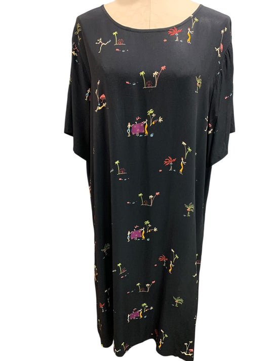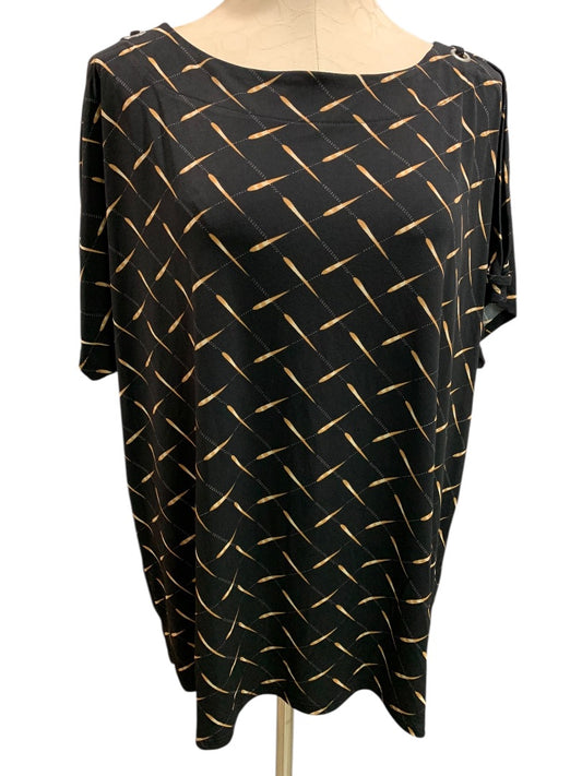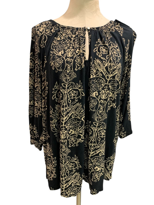 1X Lucky Brand Black Tan Print Womens Tunic Top Boho Top