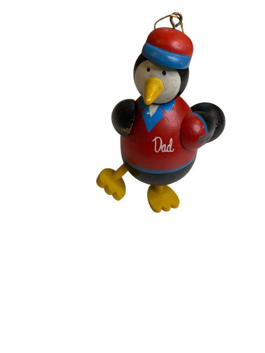 Wooden Penguin Christmas Ornament Dad Polar Bowlers 3"