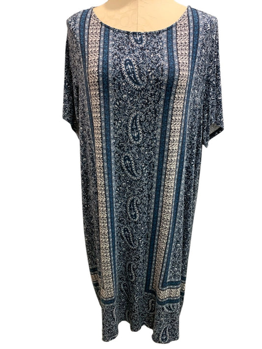 2X J.Jill Blue Tshirt Dress Short Sleeve Retro Print Soft Lightweight
