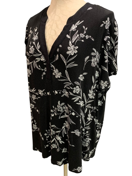 2XL Syoss Womens Soft Black Tshirt Floral Print White V-Neck
