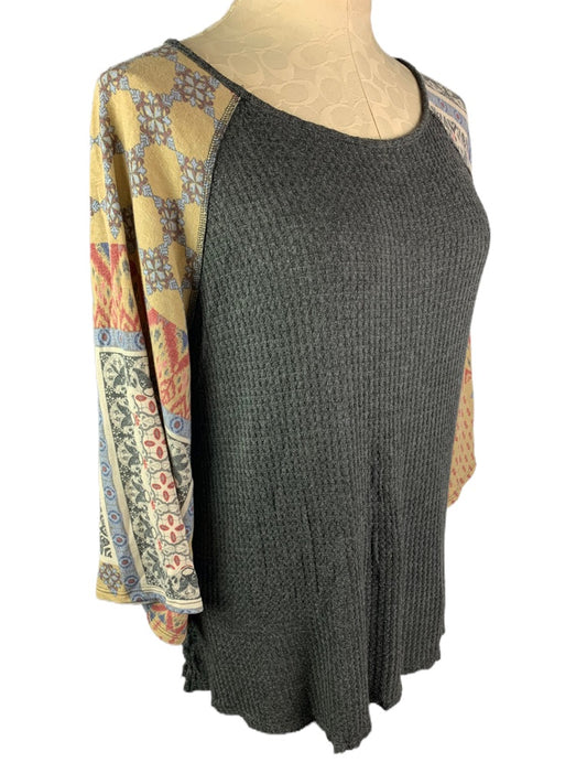 Medium FSL Apparel Women's Gray Jersey Waffle Contrast Print Sleeves