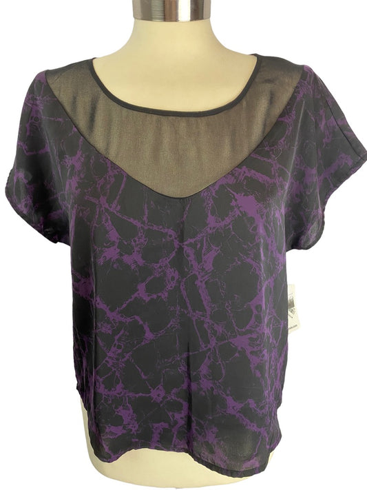 Medium Kensie Women's Purple Black Short Sleeve New Blouse Satin