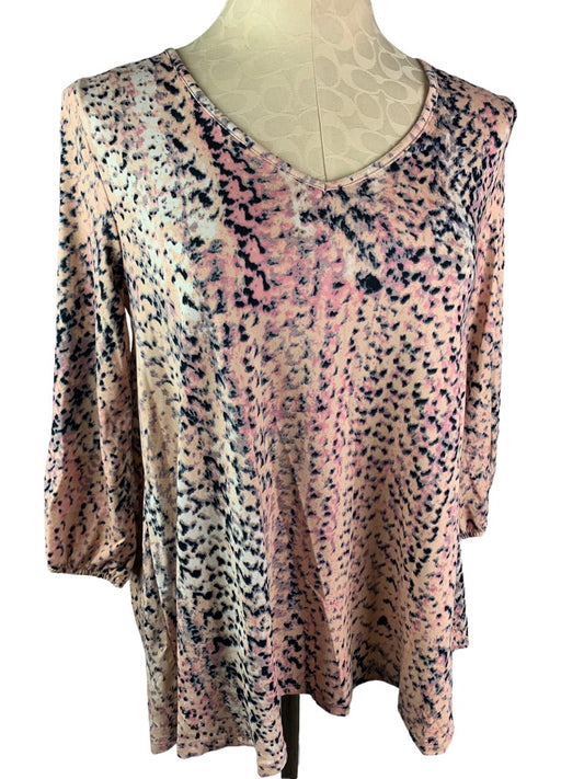 Medium Ninexis Women's Pink Navy Blue Split Banded Sleeve Tshirt V-Neck Soft