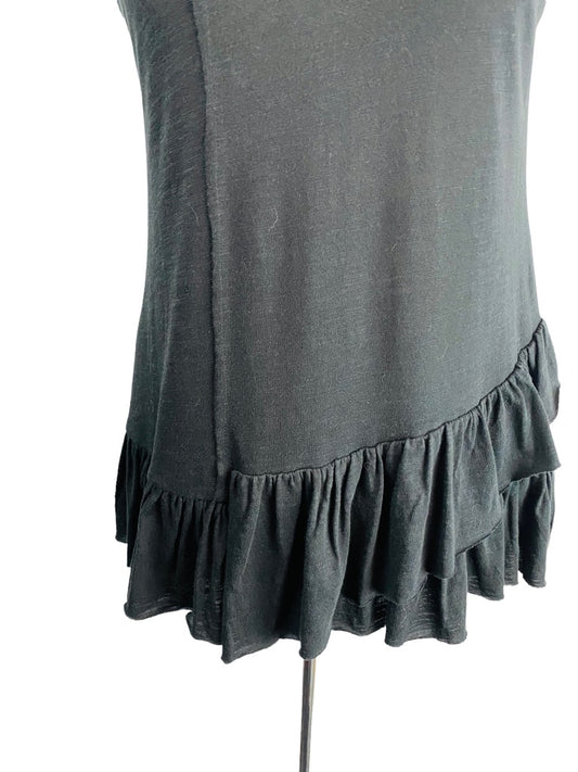 XS DG2 Diane Gilman Black Ruffle Hem Sleeveless Tshirt Tank Tunic Length